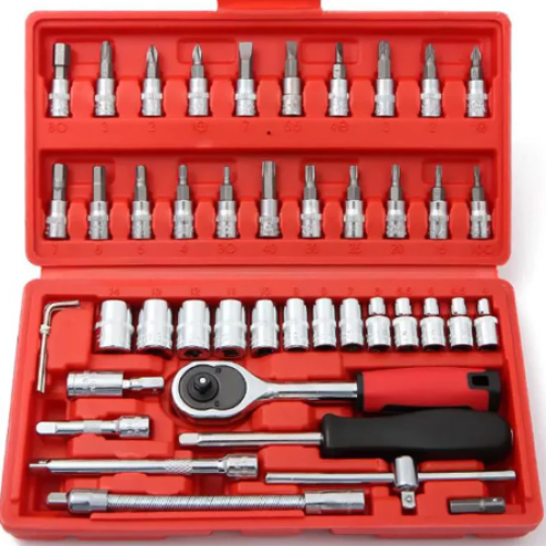 Maletín con juego de herramientas de 46 piezas portátil y practica para cualquier trabajo de mecánica o del hogar El kit incluye: 21 puntas de destornillador, 13 Tubos ¼”, 3 llaves Allen, 1 Extensor articulado ¼”, 1 Alargue de encastre ¼” X2”, 1 Alargue de encastre ¼” X4”, 1 Alargue de encastre flexible ¼” X6”, 1 Llave “T” corrediza de encastre ¼”, 1 Llave Cricket ¼”, 1 Destornillador para dados de encastre 6”, 1 Adaptador corto para dados de encastre. · Maletín de guardado y transporte incluido. ----------------------------------------------------------------------- POLITICA DE DEVOLUCIÓN O CAMBIO RECUERDA AL ACEPTAR LA COMPRA ACEPTAS HABER LEIDO Y HABERTE INFORMADO DE TODAS LAS ESPECIFICACIONES DEL PRODUCTO Compras Ecuador realizara ÚNICAMENTE cambio cuando estemos ante un producto con defecto de fabricación que pueda afectar el funcionamiento, incluyendo situaciones en las que el artículo no encienda, no cargue correctamente o llegue con desperfectos evidentes. Es importante destacar que nuestra garantía no cubre situaciones en las que el producto haya sido dañado debido a un mal uso, manipulación inadecuada o intentos de modificación por parte del cliente. Además, no nos hacemos responsables de problemas de funcionamiento que surjan debido a una configuración incorrecta o de no poder configurar por parte del usuario. mismo que deberás demostrar en un plazo máximo de 24 horas a través de un video con la guía de envió